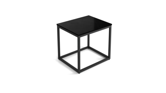 Elite end table, Black metal base, Nero Marmo Quartz top, 20″Wx24″L